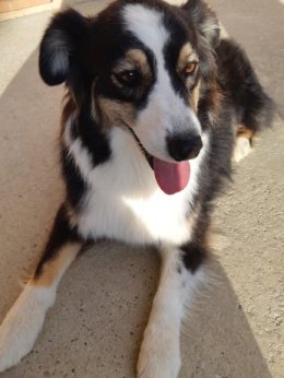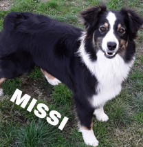 Missi est une chienne berger australien noire tricolore, âgée de 7 ans.